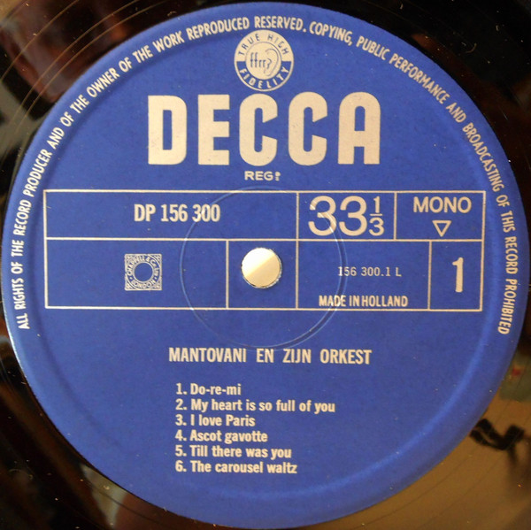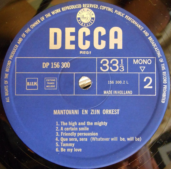 Mantovani En Zijn Orkest* – Bekende Film-Melodieën (LP, Album, Mono, Club)
