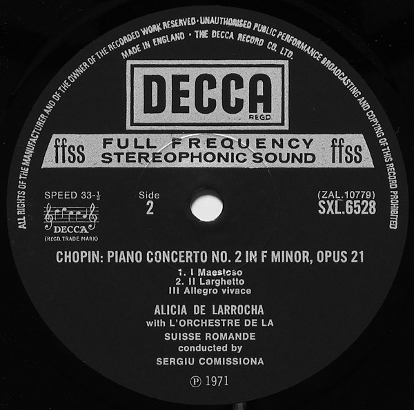 . Frédéric Chopin, Alicia De Larrocha, L’Orchestre De La Suisse Romande, Sergiu Comissiona – Piano Concerto No. 2 In F Minor, Opus 21