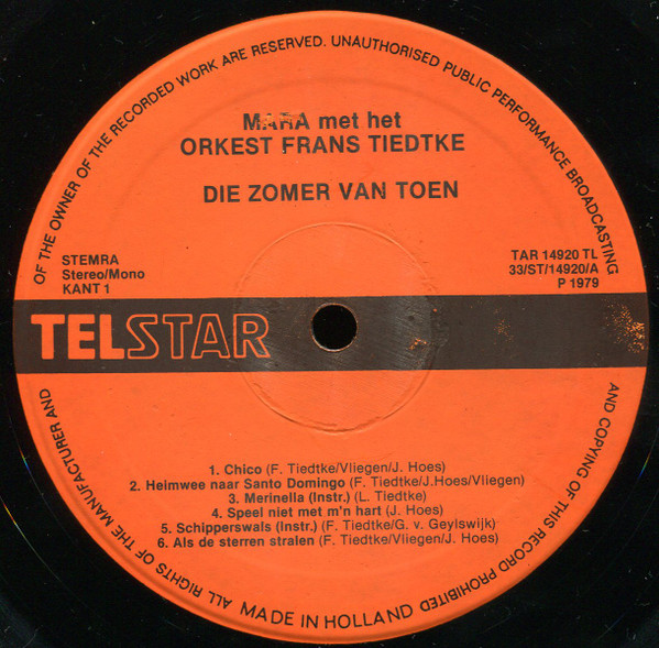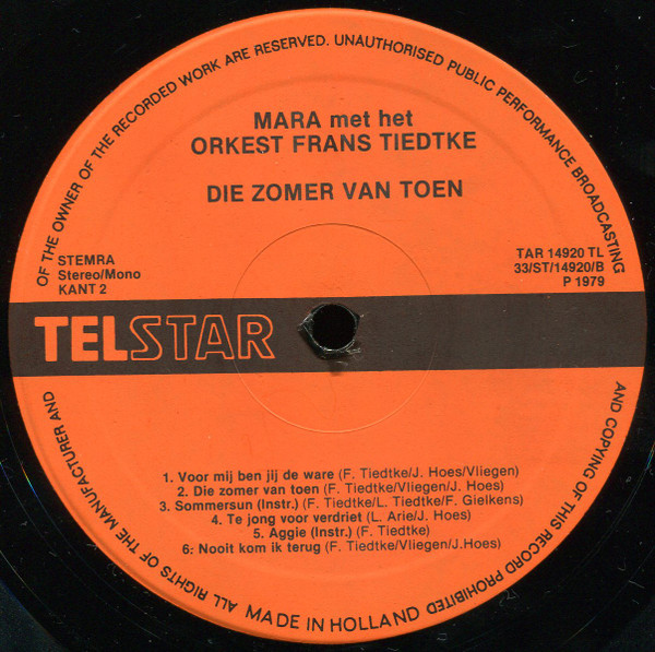 Mara (8) Met Orkest Frans Tiedtke – Die Zomer Van Toen (LP, Album)