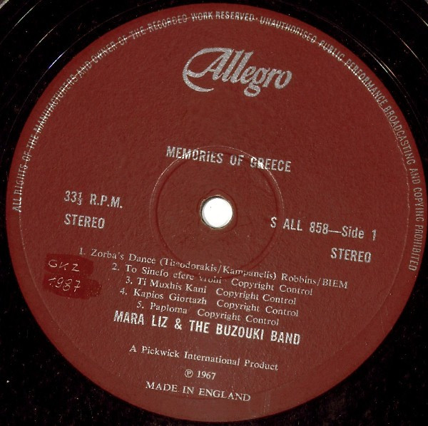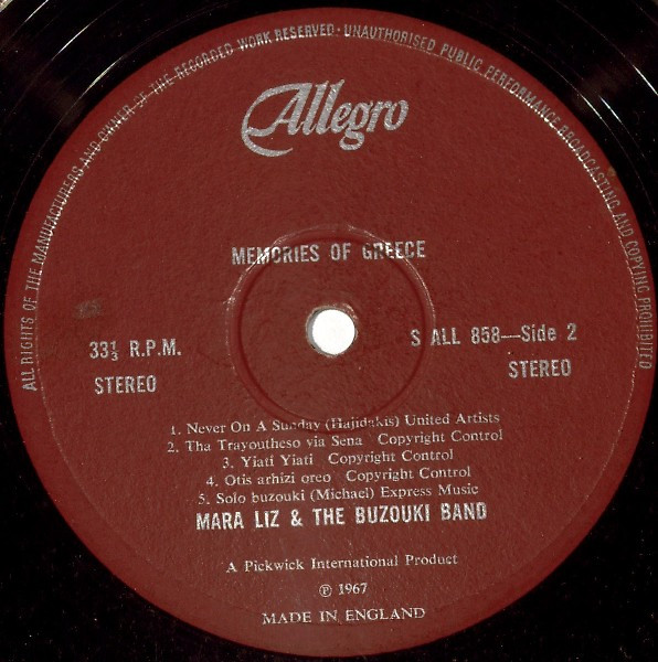 Mara Liz & The Bouzouki Band – Memories Of Greece (LP, RE)