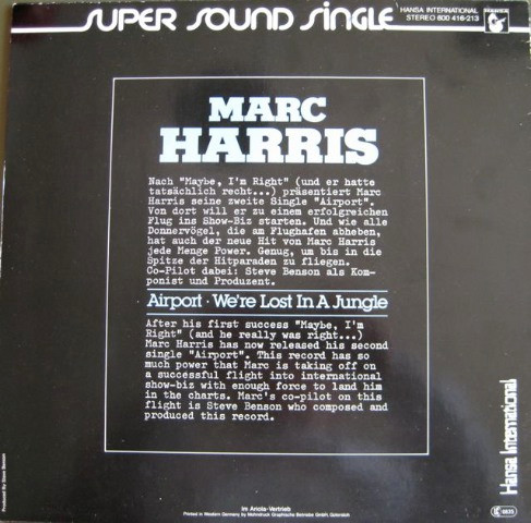 Marc Harris – Airport / We’re Lost In A Jungle (12″, Maxi)