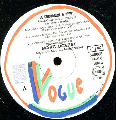 Marc Ogeret – Poème De Jean Genet Mis En Musique Par Hélène Martin – Le Condamné À Mort (LP, Album, Gat)
