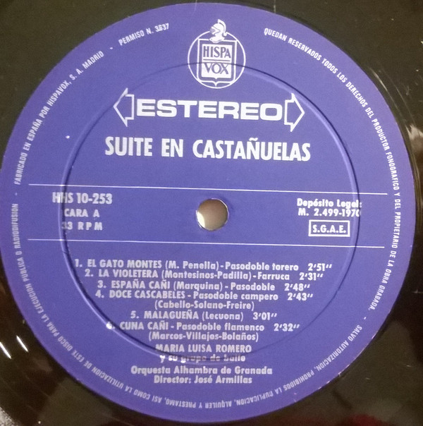 Maria Luisa Romero – Suite En Castañuelas (LP, Album, RE)