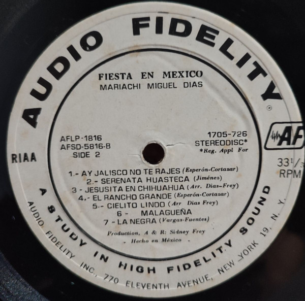 Mariachi Miguel Diaz – Fiesta En Mexico (LP, Album, RE)