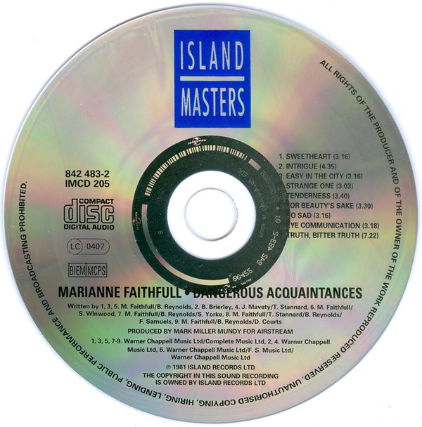Marianne Faithfull – Dangerous Acquaintances (CD, Album, M/Print, RE)