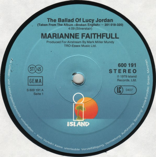 Marianne Faithfull – The Ballad Of Lucy Jordan (12″, Maxi)