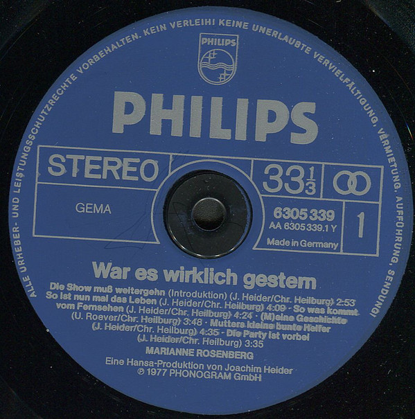 Marianne Rosenberg – War Es Wirklich Gestern (LP, Album)