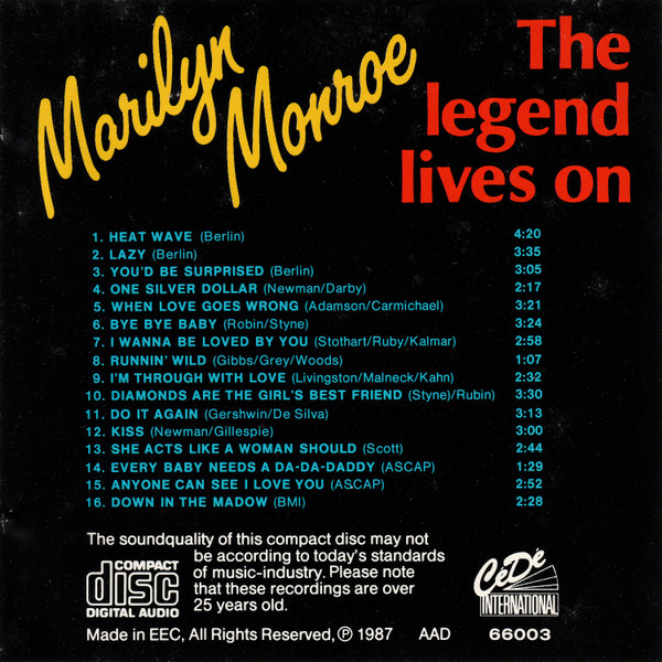 Marilyn Monroe – The Legend Lives On (CD, Comp)
