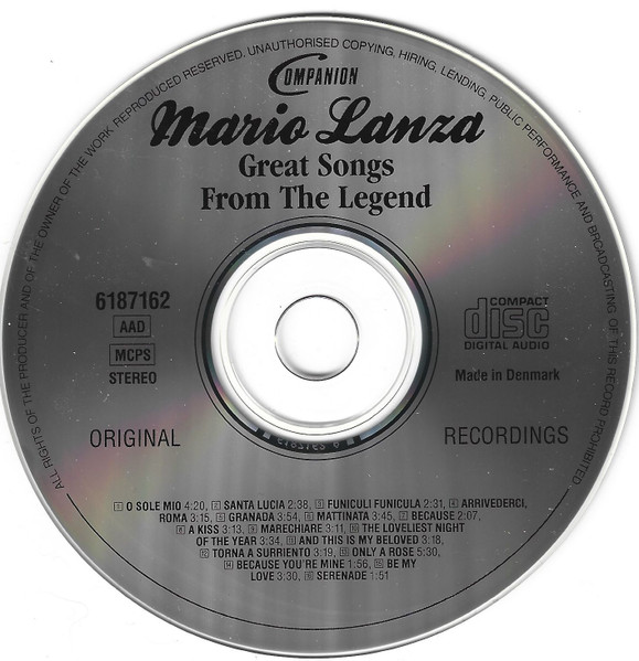Mario Lanza – Great Songs From The Legend (CD, Comp)
