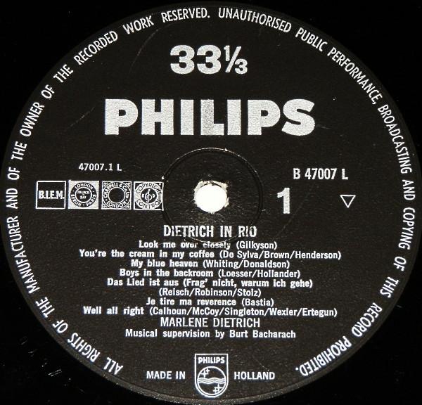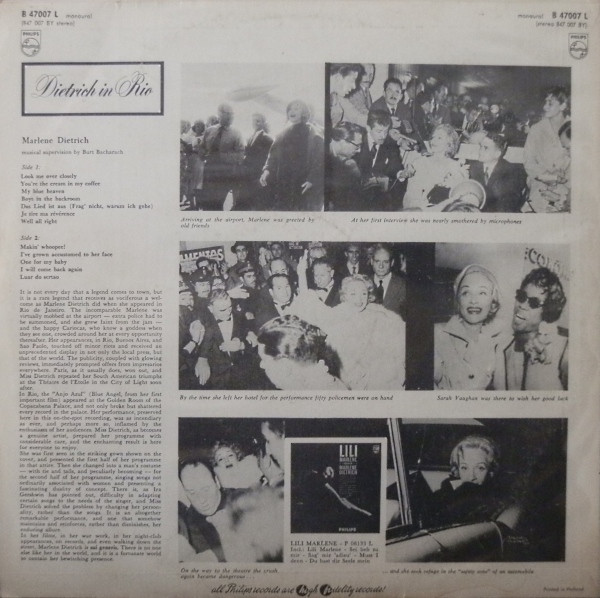 Marlene Dietrich – Dietrich In Rio (Recorded In Rio De Janeiro) (LP, Album, Mono, RE)
