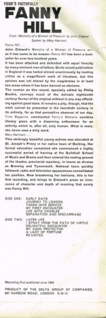 Mary Harrison – Your’s Faithfully Fanny Hill (LP, Mono)