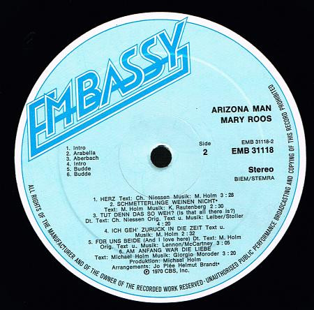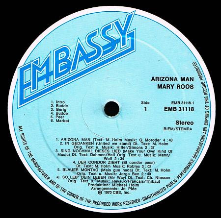 Mary Roos – Mary Roos (Arizona Man) (LP, Album, RP)