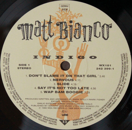 Matt Bianco – Indigo (LP, Album, RSA)