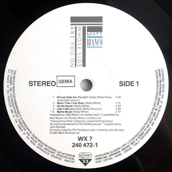 Matt Bianco – Whose Side Are You On (LP, Album)