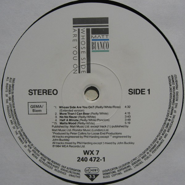 Matt Bianco – Whose Side Are You On (LP, Album)