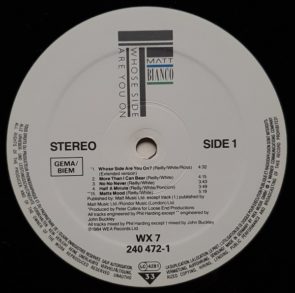 Matt Bianco – Whose Side Are You On (LP, Album, RSA)