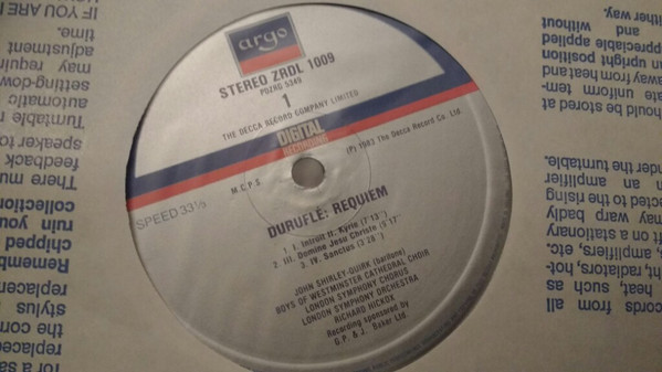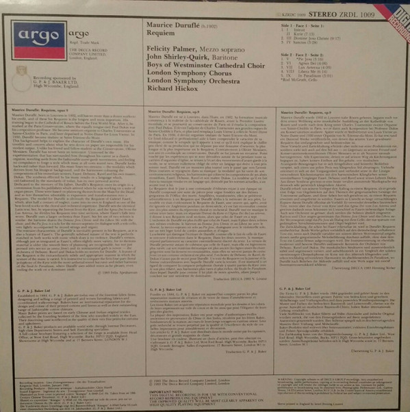 Maurice Duruflé, Felicity Palmer, Westminster Cathedral Choir, London Symphony Orchestra, London Symphony Chorus, Richard Hickox, John Shirley-Quirk – Requiem (LP)