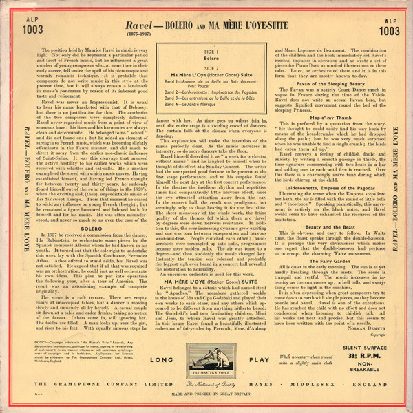 Maurice Ravel – Serge Koussevitzky Conducting Boston Symphony Orchestra – Bolero / Mother Goose Suite (LP, Mono, RE, Gat)