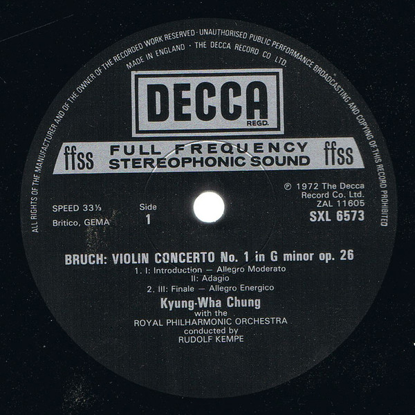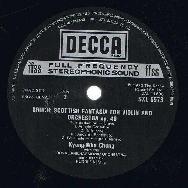 Max Bruch, Kyung-Wha Chung, Royal Philharmonic Orchestra, Rudolf Kempe – Violin Concerto / Scottish Fantasia (LP)