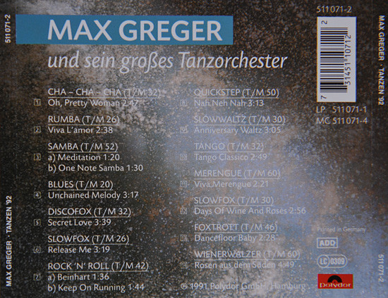 Max Greger Und Sein Großes Tanzorchester – Tanzen ’92 (CD, Album)