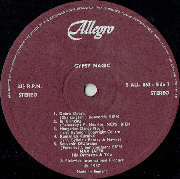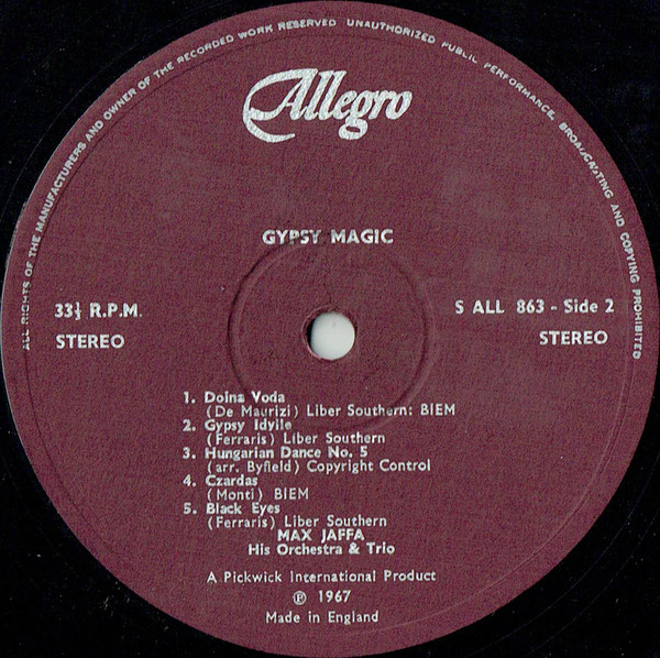 Max Jaffa His The Max Jaffa Orchestra And The Max Jaffa Trio – Gypsy Magic (LP, Album)