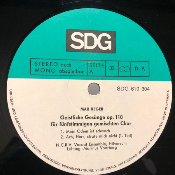 Max Reger, Marinus Voorberg, NCRV Vocaal Ensemble – Geistliche Gesänge op. 110 (LP, Album)
