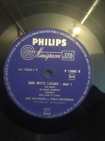 Max van Praag en Sonja Oosterman – Dirk Witte Liedjes (10″, Album, Mono)