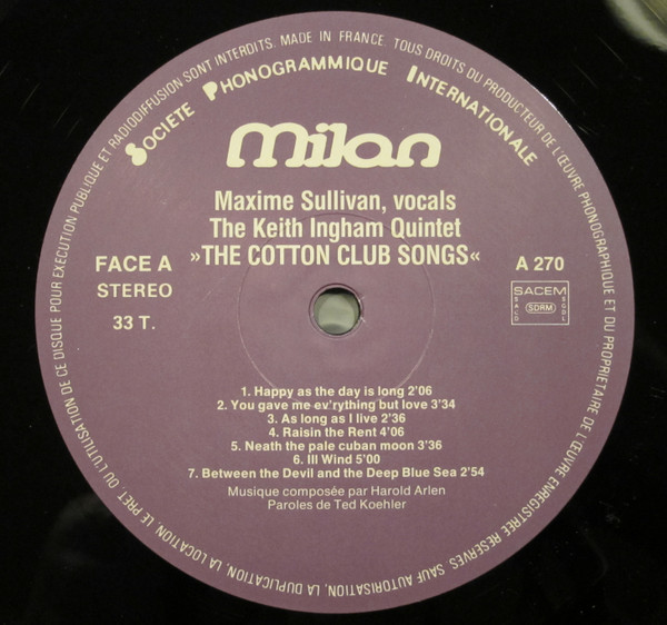 Maxine Sullivan – The Great Songs From The Cotton Club By Harold Arlen And Ted Koehler (LP, Album)