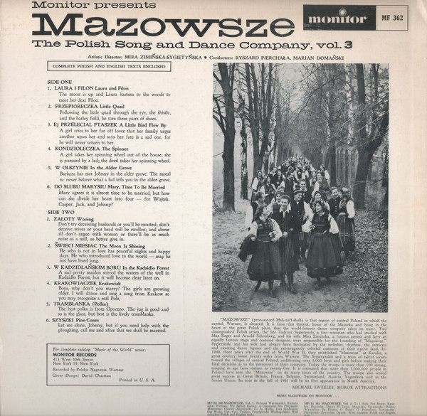 Mazowsze – The Polish Song And Dance Company, Vol. 3 (LP, Mono)