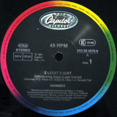 MC Hammer – 2 Legit 2 Quit (12″, Single)