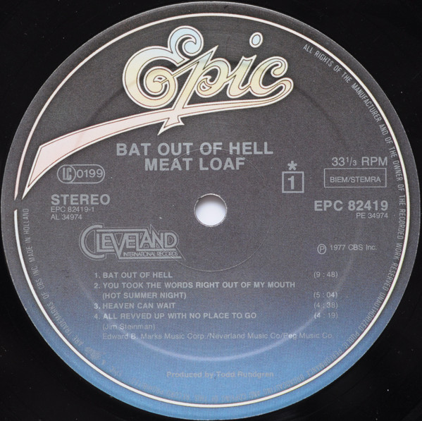 Meat Loaf – Bat Out Of Hell (LP, Album, RP, 54)