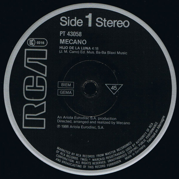 Mecano – Hijo De La Luna (12″, Maxi)