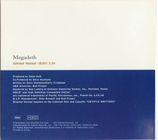 Megadeth – Almost Honest (HDCD, Single, Promo, Dig)
