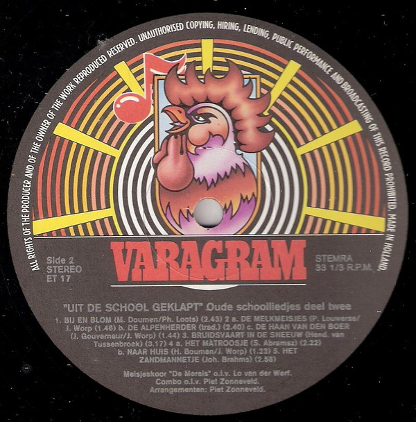 Meisjeskoor “De Merels”* o.l.v. Lo van der Werf Met Begeleiding Van Een Combo o.l.v. Piet Zonneveld – Uit De School Geklapt – Oude Schoolliedjes Deel Twee (LP, Album)