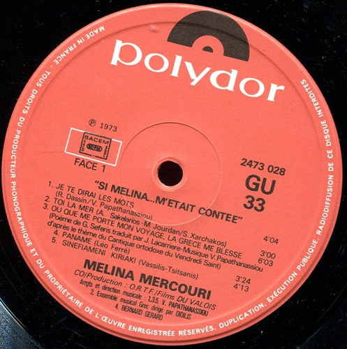 Melina Mercouri – Si Melina… M’Etait Contée (LP)