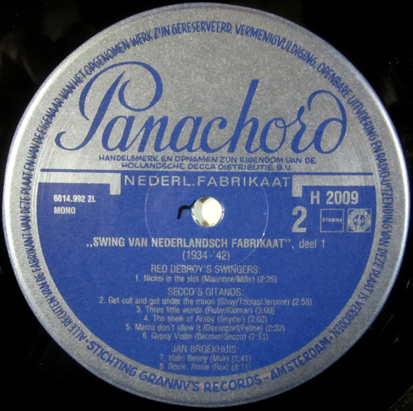 Melle Weersma, Red Debroy, Secco’s Gitanos, Jan Broekhuis* – Swing Van Nederlandsch Fabrikaat, Deel 1 (1934-’43) (LP, Comp, Mono)
