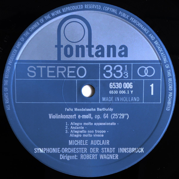 Mendelssohn*, Michèle Auclair, Robert Wagner (4), Wolfgang Sawallisch – Violinkonzert E-Moll Italienische Sinfonie (LP, Comp, RE)