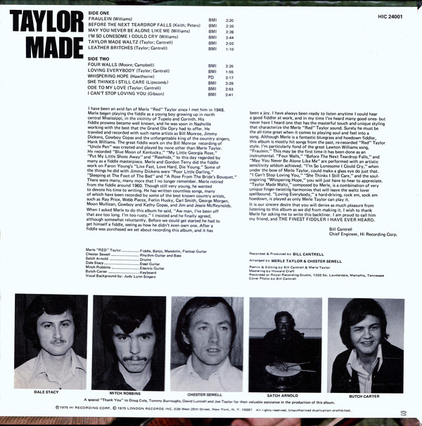 Merle “Red” Taylor – Taylor Made (The Soul Fiddle Of Merle “Red” Taylor) (LP, Album, Sil)