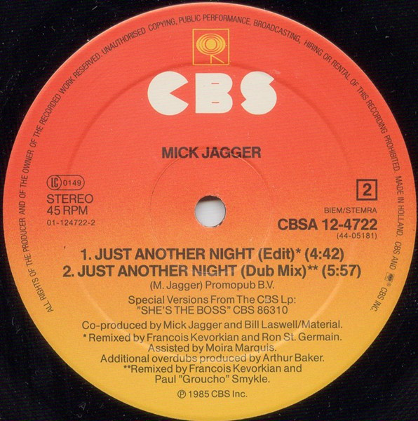 Mick Jagger – Just Another Night (Extended Remix) (12″, Maxi)
