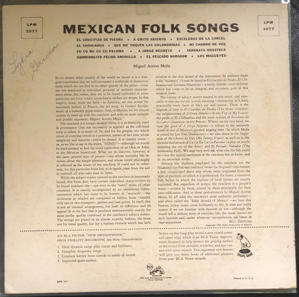 Miguel Aceves Mejia – Mexican Folk Songs (LP, Album, Mono)