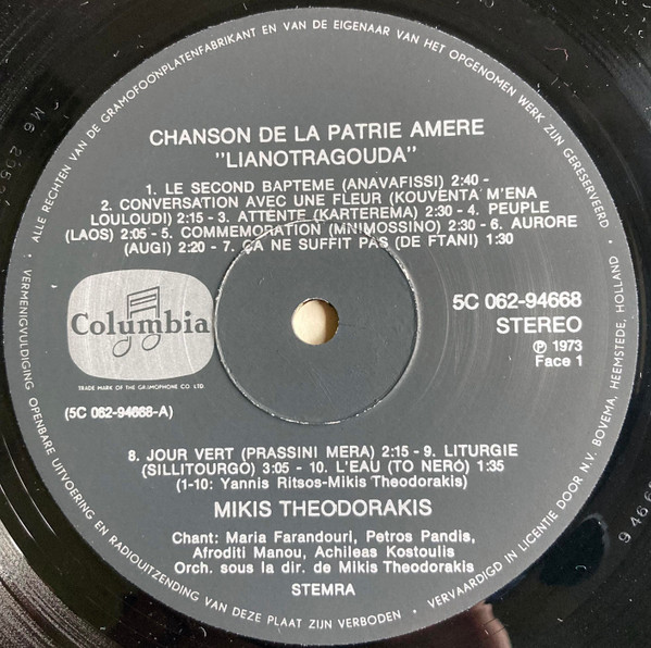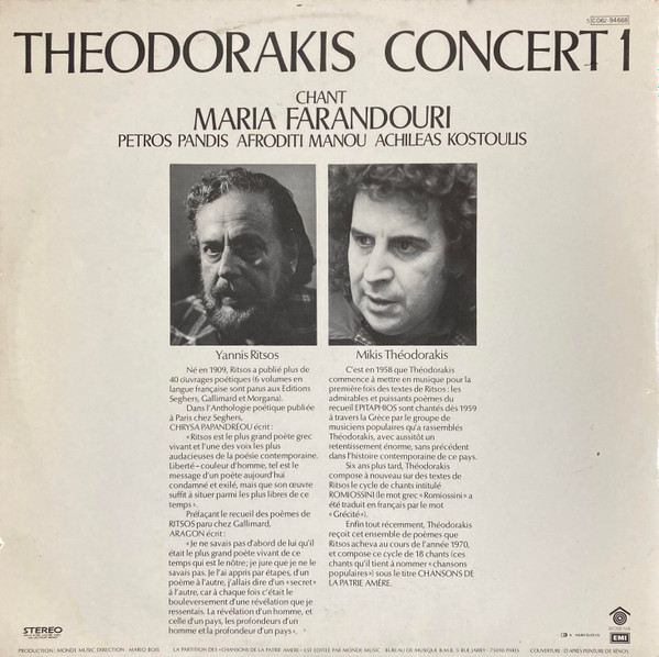 Mikis Theodorakis – Concert 1 Lianotragouda (LP, Album)