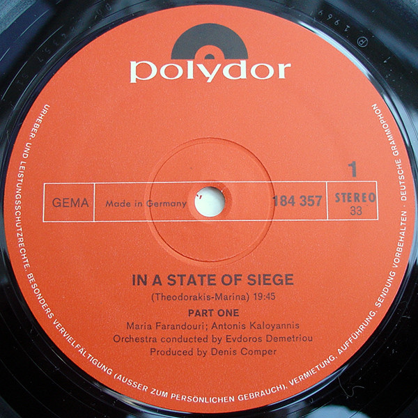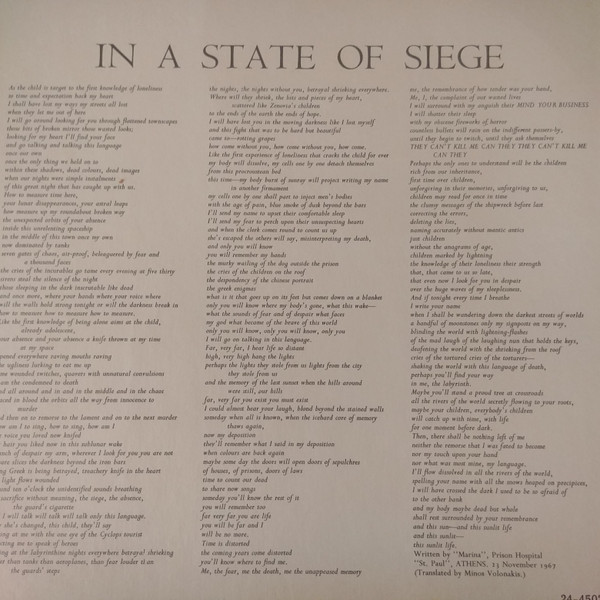 Mikis Theodorakis – In A State Of Siege (LP, Album)