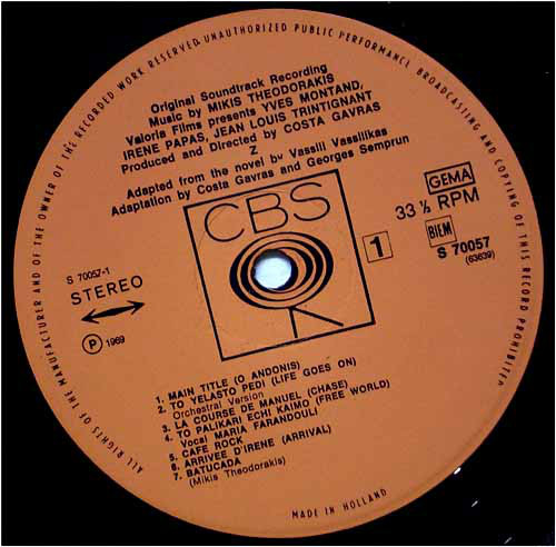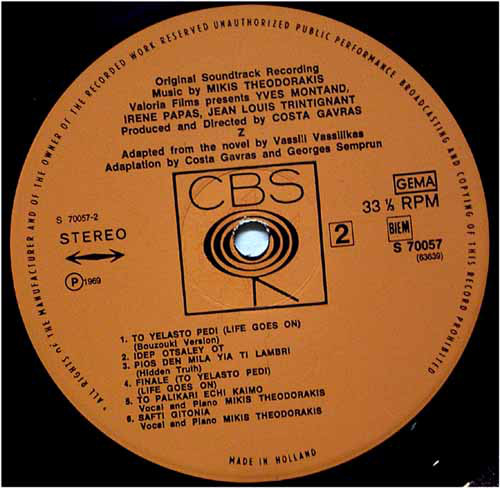 Mikis Theodorakis – Z (Original Soundtrack Recording) (LP, Album, Wal)
