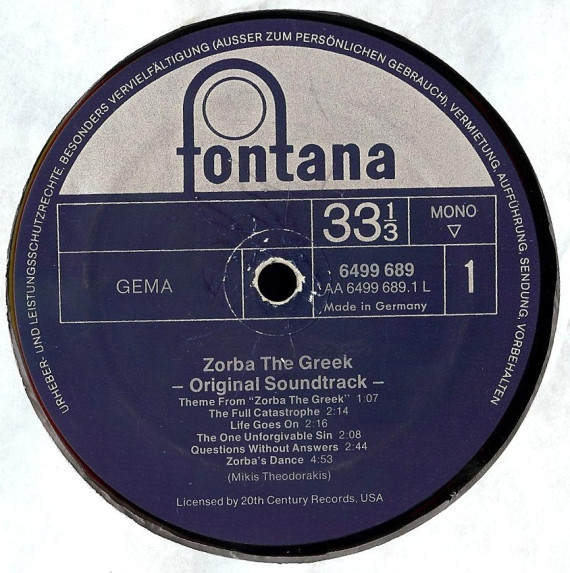 Mikis Theodorakis – Zorba The Greek – Original Soundtrack – (LP, Album, Mono, RE)