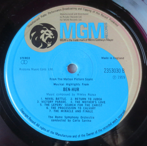 Miklós Rózsa – Ben-Hur Volume 1 (LP, Album, RE, Gat)