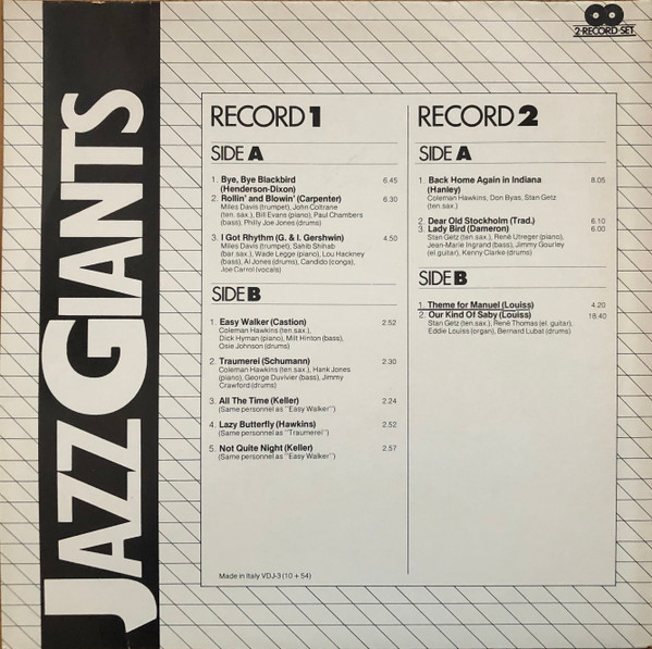 Miles Davis, Coleman Hawkins, Stan Getz, Don Byas, Kenny Clarke, John Coltrane – Jazz Giants (2xLP, Comp)