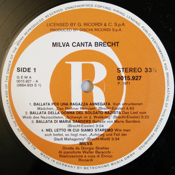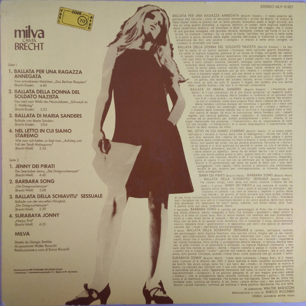 Milva – Milva Canta Brecht (LP, Album, RE)