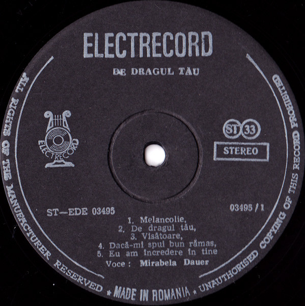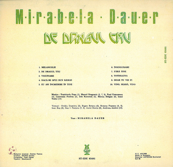 Mirabela Dauer – De Dragul Tău (LP, Album)