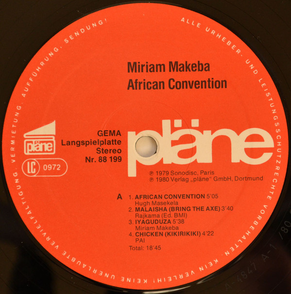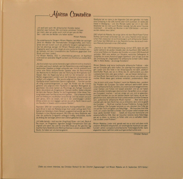 Miriam Makeba – African Convention (LP, Album, Gat)