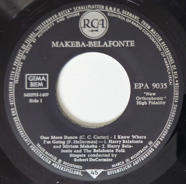 Miriam Makeba – Harry Belafonte – One More Dance / I Know Where I’m Going / The Click Song / Hené Ma Tov (7″, EP)